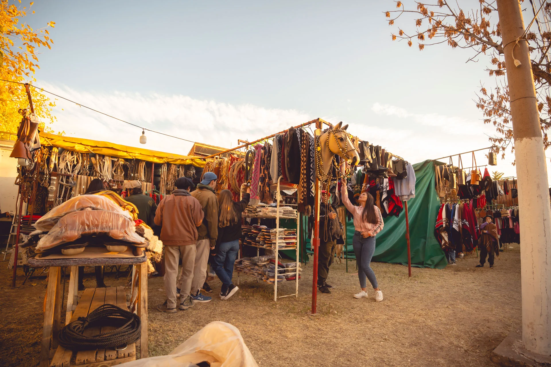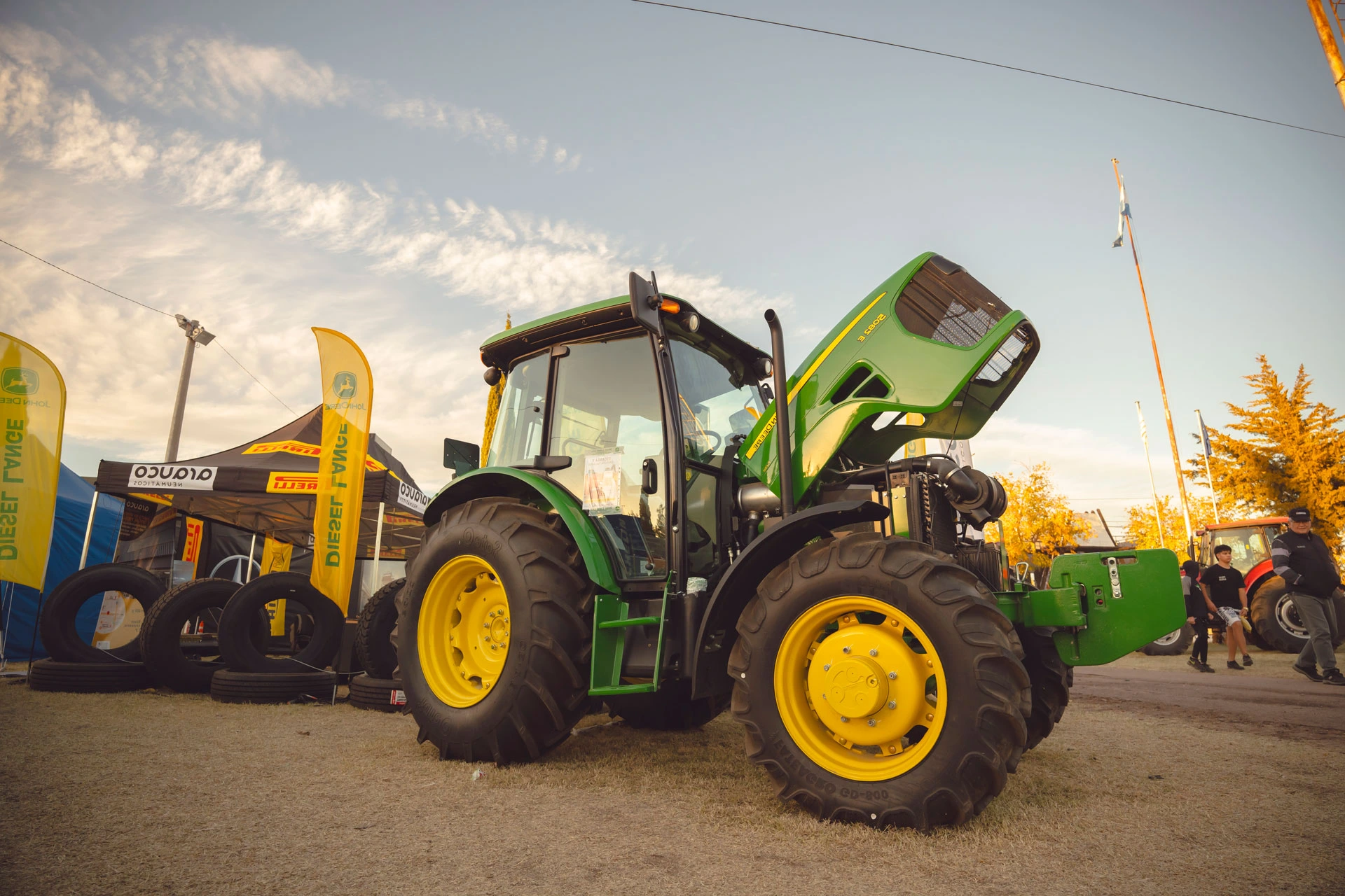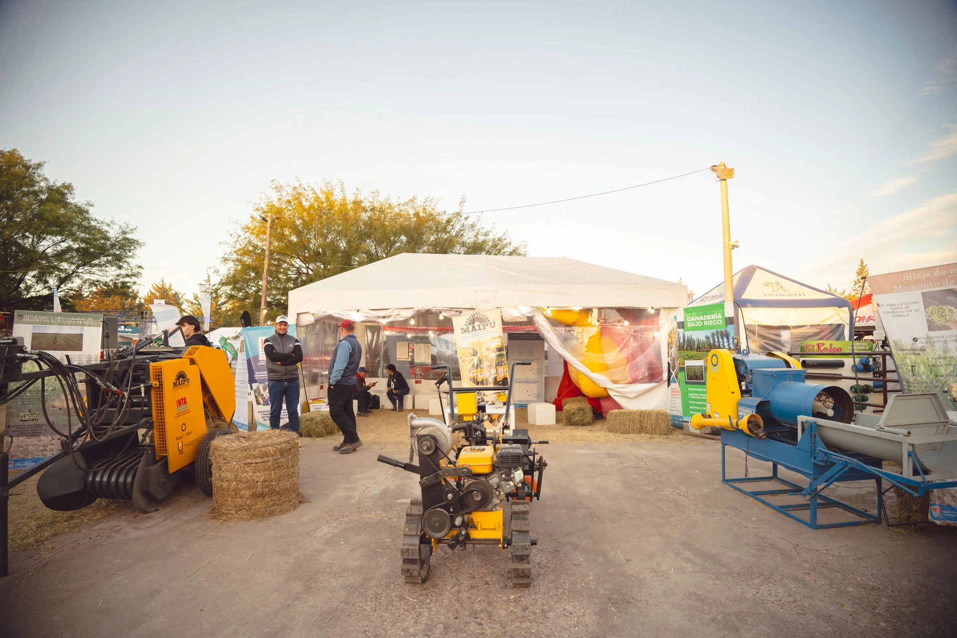 Al aire libre hay más de 100 stand donde queda reflejada la trascendencia de la Fiesta como un espacio abierto al desarrollo económico en los distintos sectores productivos. Implementos para el hombre de campo (mangas, tranqueras, cepos) o maquinaria de última generación, tractores, generadores eléctricos, fabricantes y colocadores de malla antigranizo, sistemas de riego o de energía solar, camionetas 4×4, camiones y automóviles cero kilómetro, entre otros tantos artículos, forman parte de la exposición. También hay un amplio sector de servicios y se realizan ronda de negocios.