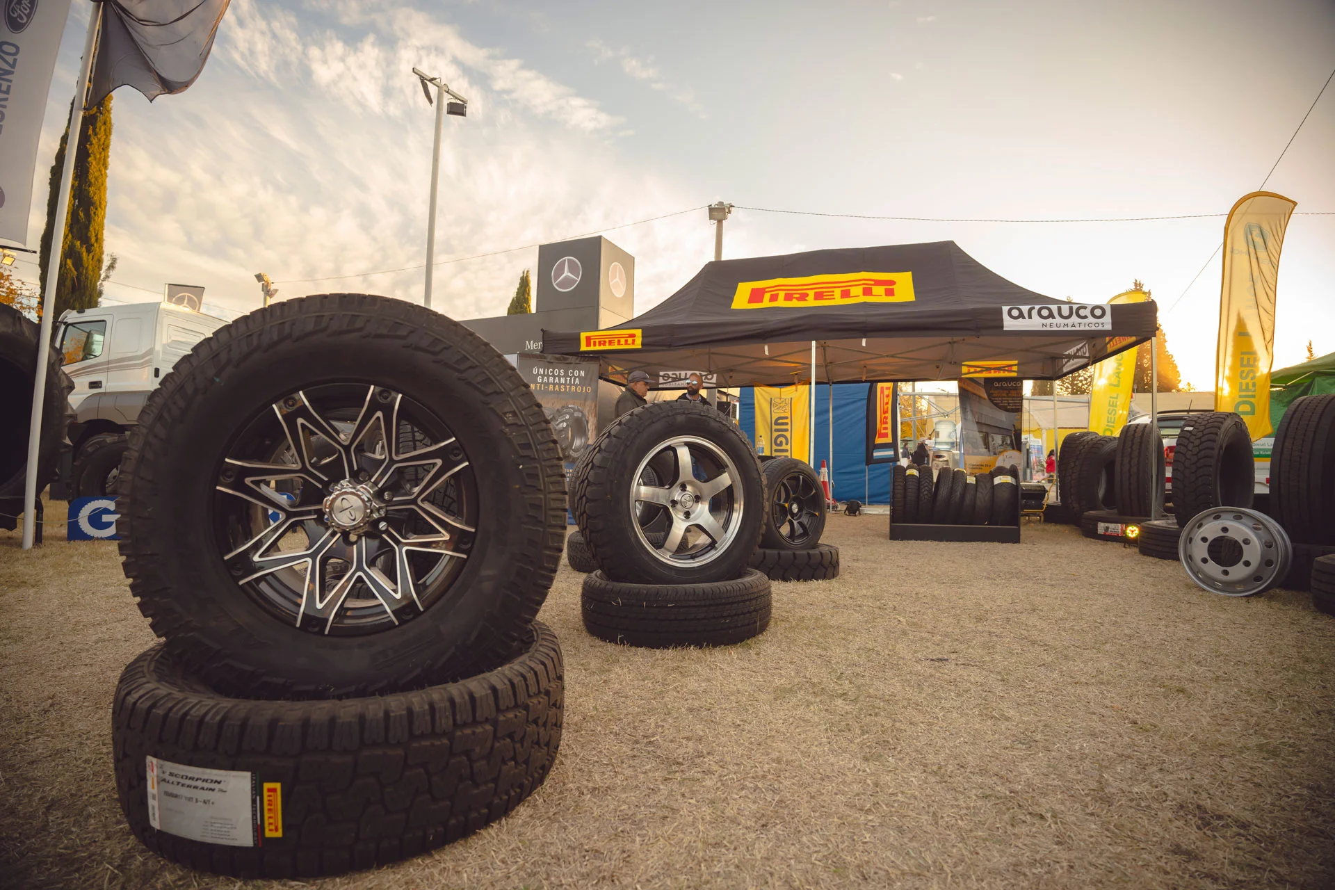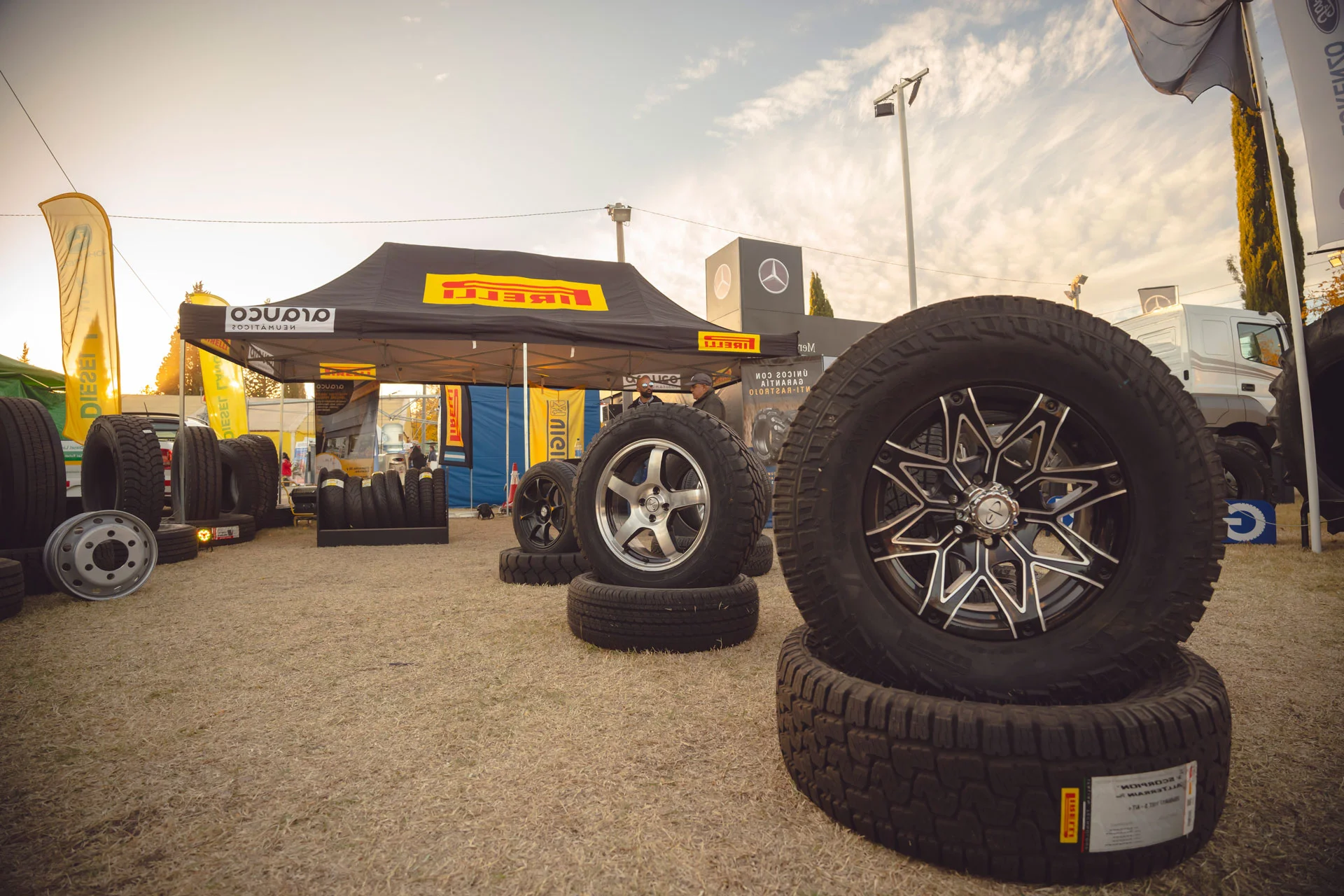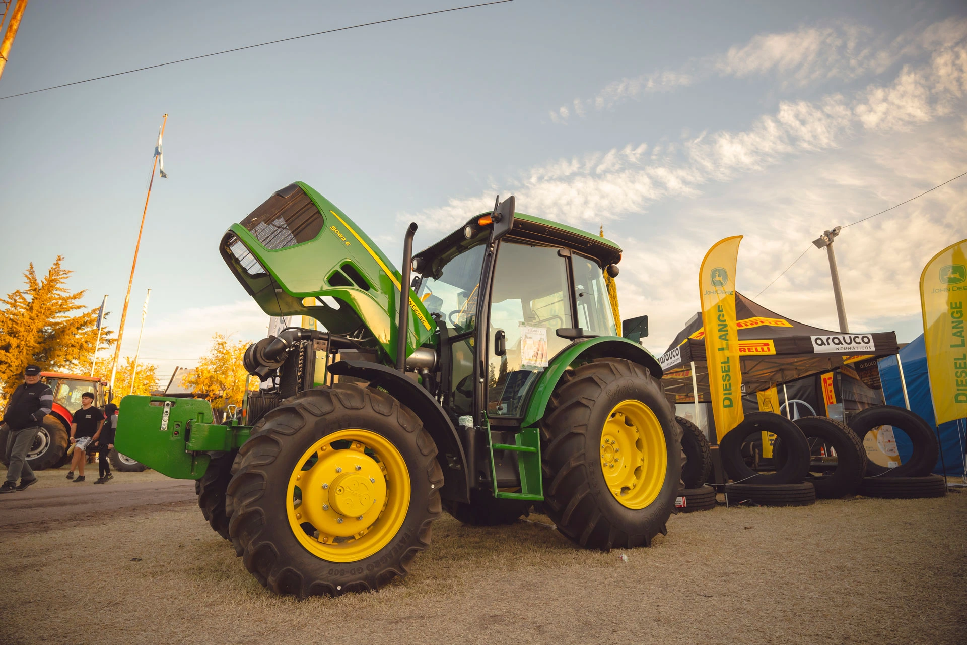 Al aire libre hay más de 100 stand donde queda reflejada la trascendencia de la Fiesta como un espacio abierto al desarrollo económico en los distintos sectores productivos. Implementos para el hombre de campo (mangas, tranqueras, cepos) o maquinaria de última generación, tractores, generadores eléctricos, fabricantes y colocadores de malla antigranizo, sistemas de riego o de energía solar, camionetas 4×4, camiones y automóviles cero kilómetro, entre otros tantos artículos, forman parte de la exposición. También hay un amplio sector de servicios y se realizan ronda de negocios.