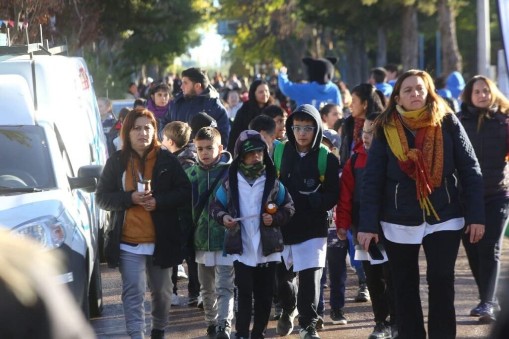 El colorido y el ingenio de los pibes empezó a verse desde muy temprano el miércoles. Casi todos tienen su propia mascota, siendo la atracción principal en la mayoría de los casos. Otros apelan a carteles graciosos, como el que se dejó ver a mano derecha viniendo de oeste a este por parte de la Escuela 12 de Agosto: «besos gratis».